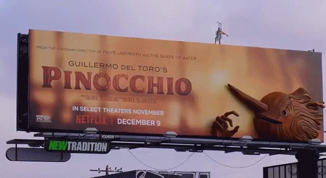 We introduced the full story and went full Guillermo with visuals of death, fascism and fantasty. The tagline “Love Will Give You Life” speaks to the emotion, the literal story of Pinocchio’s creation, and (spoiler) his cycles of death and rebirth to save his father.